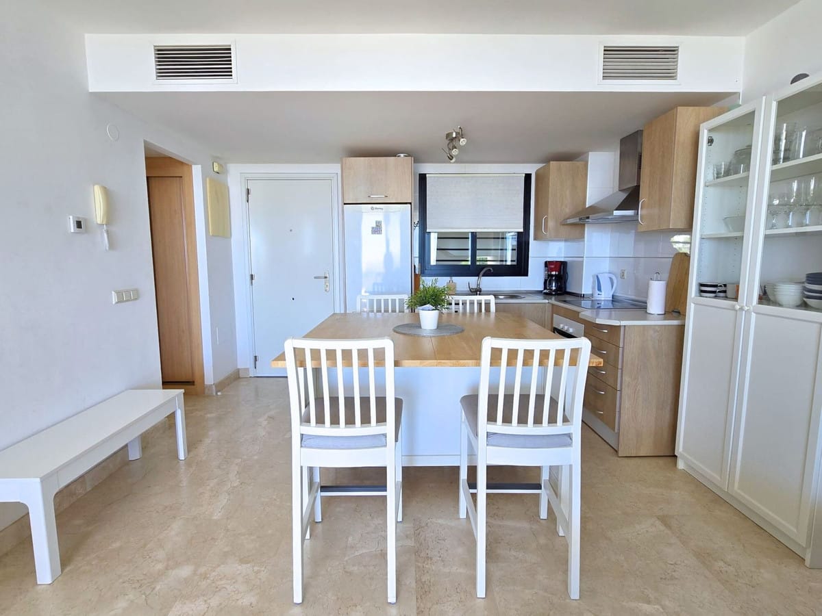 Bright and high-quality apartment for sale with spectacular front sea views. It features 1 bedroom, 1 bathroom with a shower, a fully equipped kitchen, a living room with a sofa bed, centralized air conditioning and built-in wardrobes. Ideal as an investment, it also has a tourist rental license.