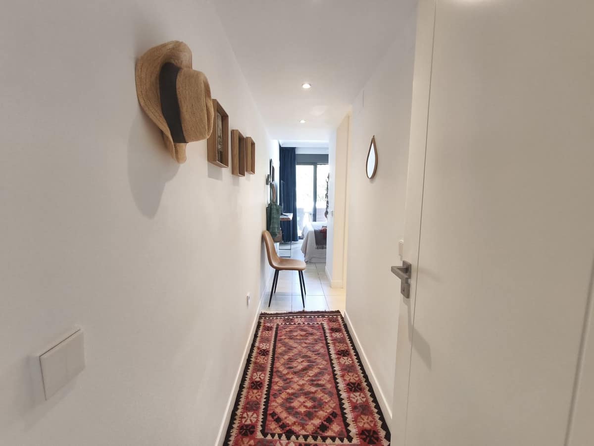 It comprises an entrance hall, spacious living room with direct access to a pleasant terrace, dining area in the living room, fully equipped separate kitchen with high-end appliances, drying area, master bedroom with access to the terrace, dressing room and en-suite bathroom with shower, spacious second bedroom and another bathroom with shower.