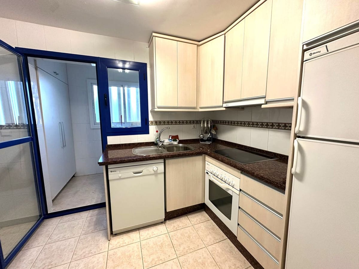 The property features a bright and spacious living-dining room with direct access to a 15 m² terrace, offering breathtaking sea views. The fully equipped kitchen comes with modern appliances and a functional design that combines style and practicality.