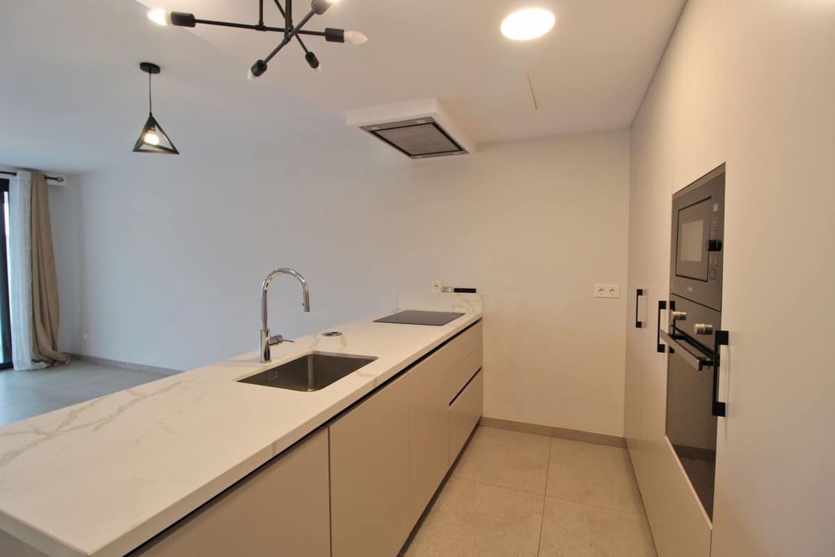 2-bedroom apartment located in the heart of San Pedro, walking distance to all amenities. This first-floor, east-facing property offers 2 bedrooms and 2 bathrooms, a living room with a modern open-plan kitchen, and a large terrace. Both bedrooms have access to the terrace.