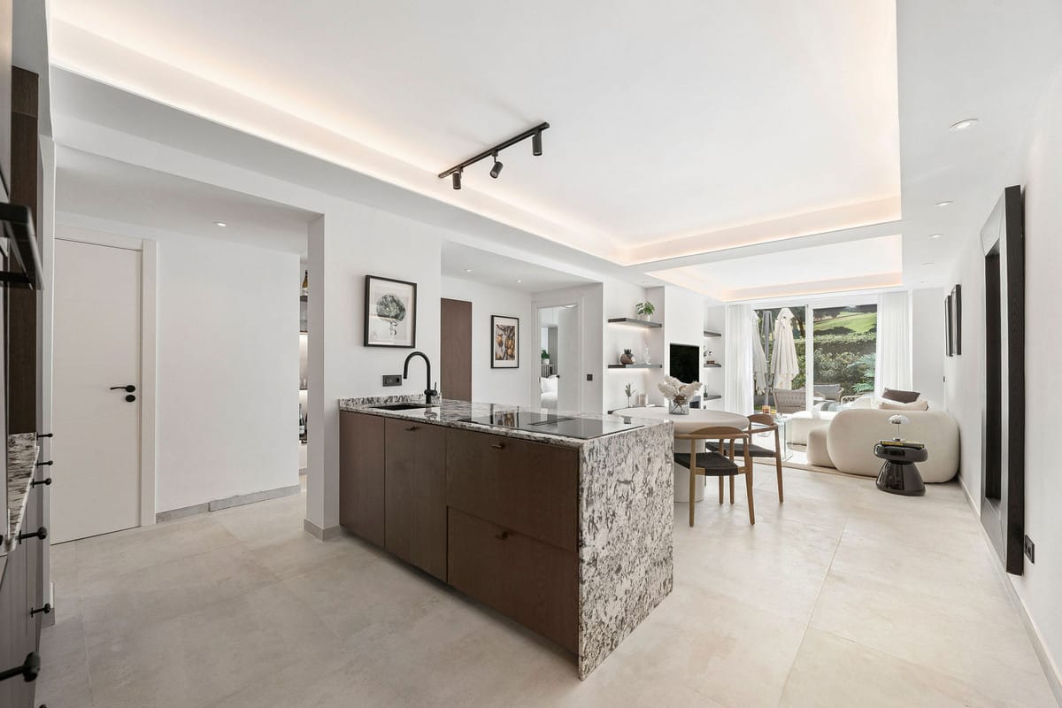 Positioned on a single level, the apartment is characterized by its light-filled interiors, created through generous use of floor-to-ceiling windows and an open-plan layout. Each of the three bedrooms includes an en-suite bathroom, offering a private and serene setting for residents and guests. The interiors are marked by clean architectural lines, warm wooden finishes, and a light-neutral color palette that enhances the feeling of spaciousness. The addition of a guest toilet adds to the functionality of the home. Scheduled for full renovation by 2025 and to be delivered fully furnished, this property ensures a turn-key experience for buyers seeking immediate comfort and modern convenience.