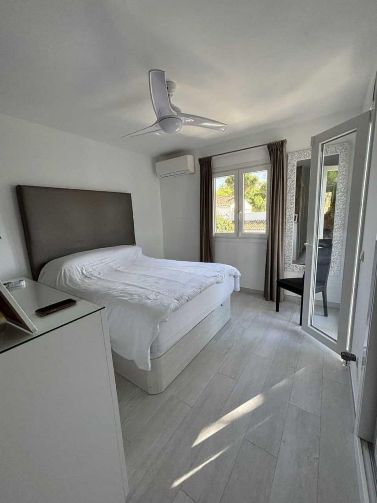 For sale is a recently renovated detached villa with three bedrooms and two bathrooms, located in a private development with extensive green areas. The property has access to a communal pool and recreational area, as well as a parking space and solar hot water system. It features underfloor heating and double glazing, ensuring a high level of comfort and energy efficiency. Its privileged location, just a six-minute walk from the beach, makes it an ideal option for those seeking a home in a peaceful setting with excellent transport links.
