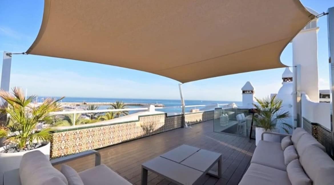 For sale this front line luxurious four-bedroom duplex penthouse in the famous Puerto Marina in Benalmádena Costa.