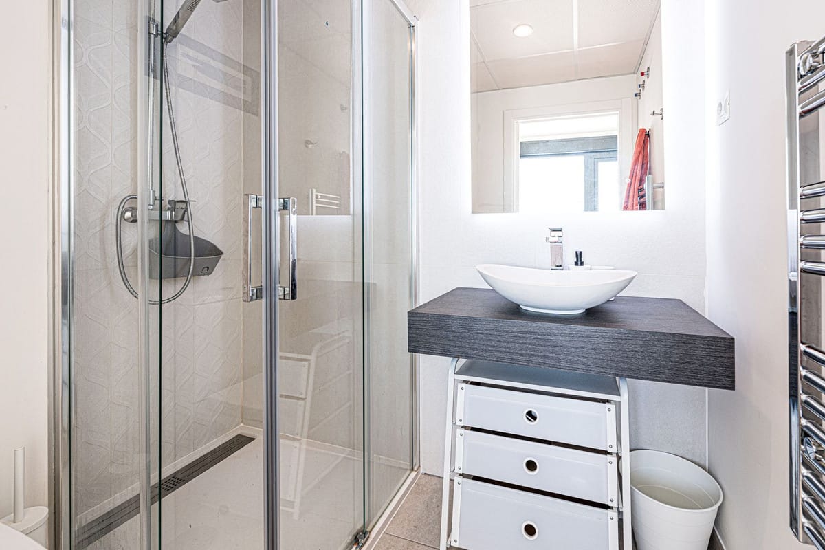 The first floor offers space for three bedrooms – a master bedroom with en-suite bathroom and two further bedrooms with a shared bathroom. A fourth bedroom is located on the top floor, including a bathroom and walk-in wardrobe. From here, you can access the roof terrace, which offers spectacular views of the sea and the whole coast.