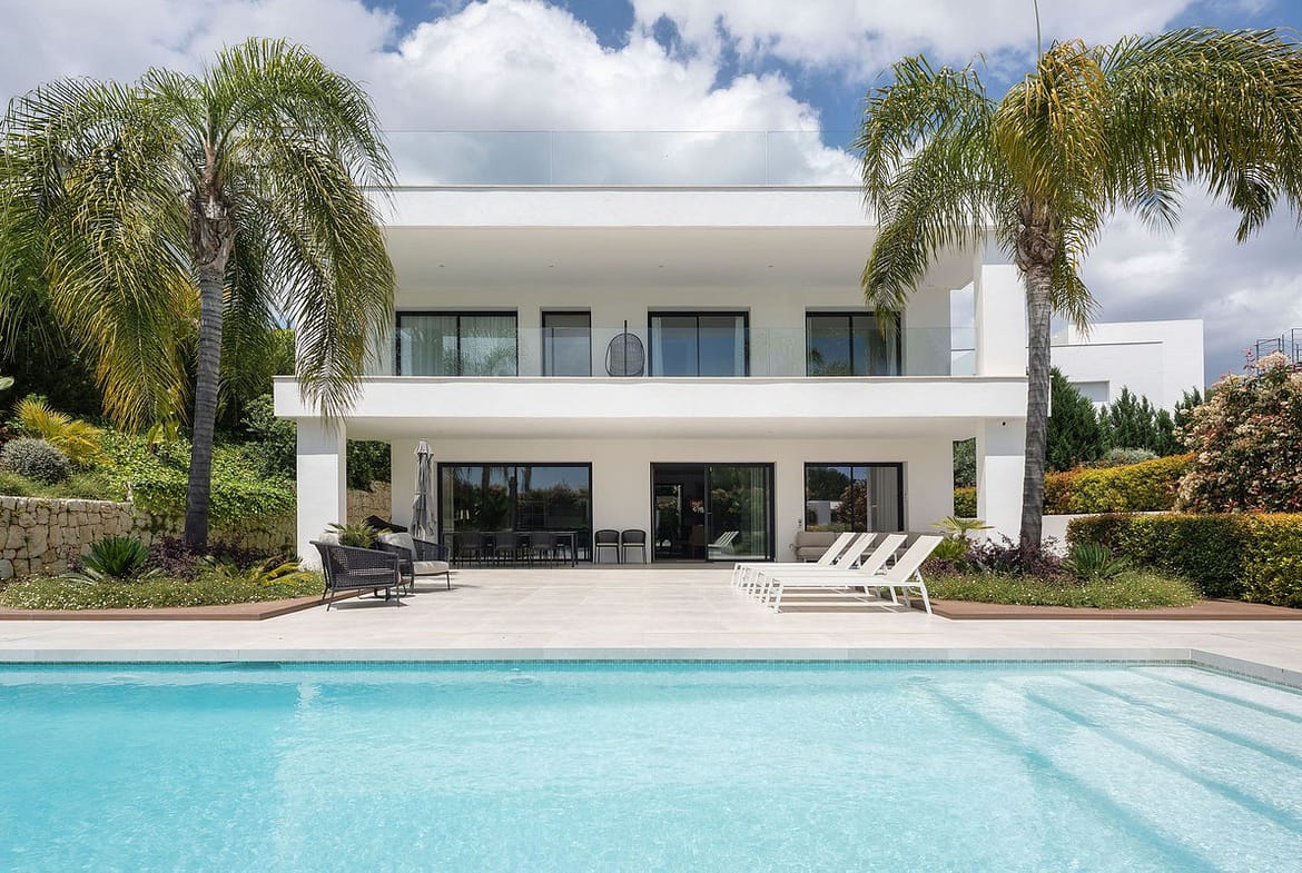 Welcome to this modern and very well built house in the lower Nueva Andalucia area. As you enter you are greeted with a large open kitchen that leads to the dining and living area, from here you can access the large covered terrace and onto the pool area with ample space for sunbathing and with an outdoor shower. On the main floor you have a bedroom onsuite currently used as an office. On the first floor you have 3 bedroom onsuite, all with access to a covered terrace. From here you have stairs leading onto the solarium which has been fitted with solar panels yet leaving space to create an entertaining space. In the basement floor floor you have the laundry area, a 2nd guest toilet, a bedroom suite, a large room that could be used as a cinema room etc and lastly a large garage for up to 4 cars. All floors are accessed by stairs or an elevator. The technology in the house is modern with water based underfloor heating powered by aerothermic system, the ac is thorugh the Airzone system, water filters & solar panels make this house very efficient to live in. A house in a very central position makes this a perfect all year living or a holiday home with the added bonus of being an attractive rental property due to its size and location.