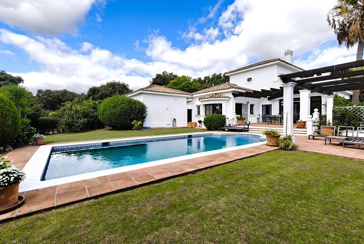 Experience refined living in this classic-style 5-bedroom, 4-bathroom villa perfectly positioned on the front line of the prestigious San Roque Golf Course. Enjoy breathtaking panoramic views over the fairways, and beautiful gardens that offer both privacy and charm.