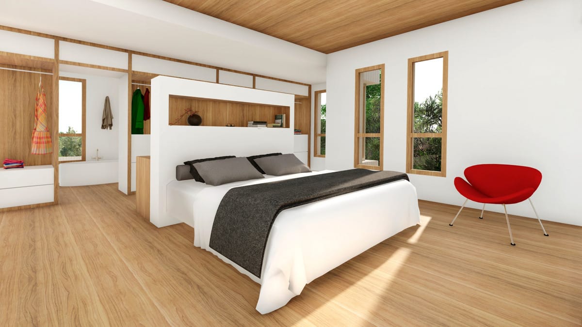 Construction using the cross-laminated timber structure system (CLT). The solid wood is not visible to the outside, so in appearance it is a house like any other traditional work (without requiring any maintenance) and prevents future cracks due to its mobility. In interiors, the wood can be seen in certain areas such as ceilings and/or some walls.